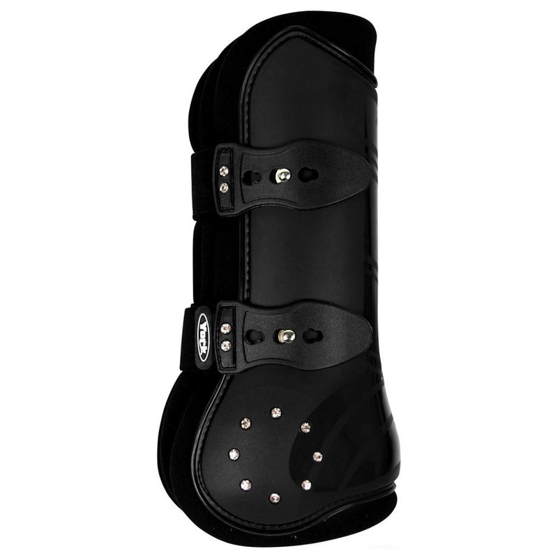 Ochraniacze przednie firmy QHP. Wykonane z mocnego plastikowego tworzywa z ozdobnymi paskami. W wewnątrz podszyty miękkim neoprenem. Zapinane na kołki.Zapewniają doskonałą ochronę przednich nóg konia przed uderzeniami oraz wstrząsami.
