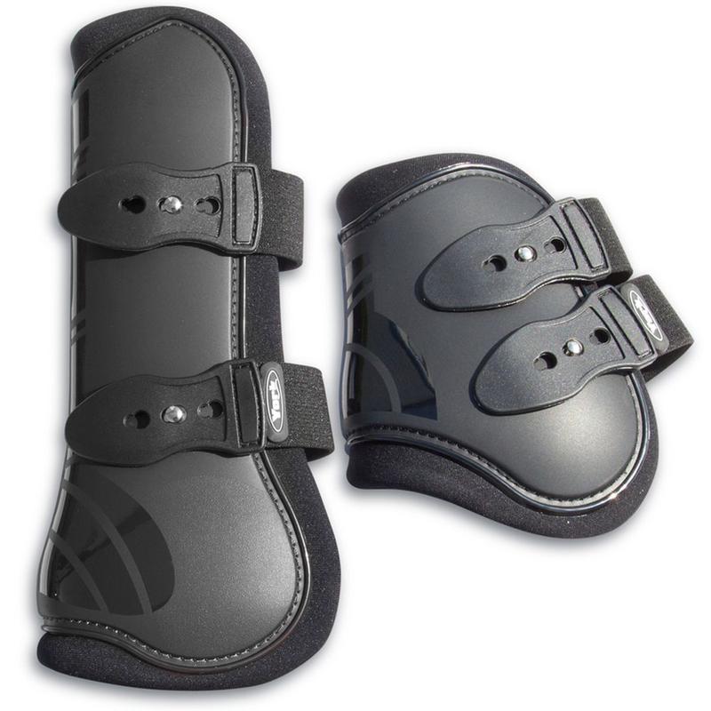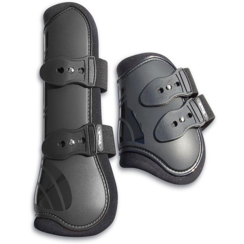 Ochraniacze Vena firmy York. Wyposażone w elastyczne paski oraz zapięcia na kołki. Wykonane z elastycznego tworzywa, podszytego miękkim materiałem. Bardzo dobrze dopasowują się do kształtu nóg. W komplecie 4 szt. Znakomita ochrona przednich i tylnych nóg konia.