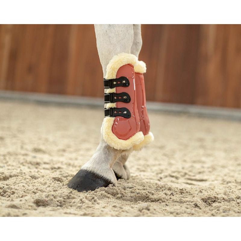 Ochraniacze z futerkiem Ontario przód firmy QHP.Podszyte syntetycznym futrem. Zapinane na kołki.