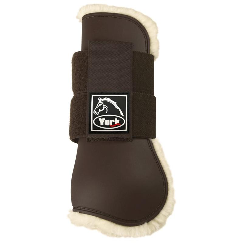 Ochraniacze firmy York. Skorupa wykonana z lekkiego, ale wytrzymałego i łatwego do utrzymania w czystości tworzywa sztucznego. Zapinane na mocne rzepy. Możliwość dokupienia ochraniaczy na tył nogi.
