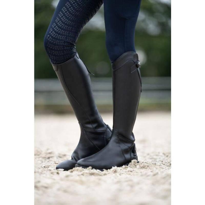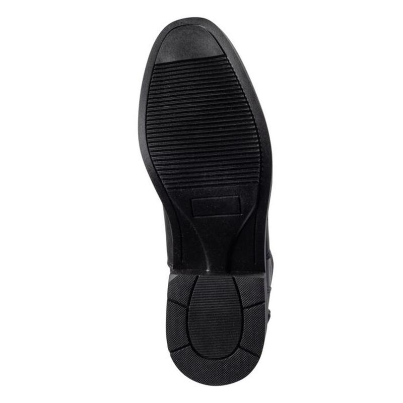 Oficerki HKM Aberdeen wykonane z wysokiej jakości imitacji skóry. Klasyczny, elegancki wygląd podkreślają ozdobne przeszycia. Model posiada elastyczną wkładkę oraz zamek błyskawiczny z tyłu z elastyczną wstawką, co ułatwia zakładanie i zapewnia dobre dopasowanie. Wsparcie na ostrogę oraz stabilny obcas gwarantują komfort i funkcjonalność podczas jazdy...