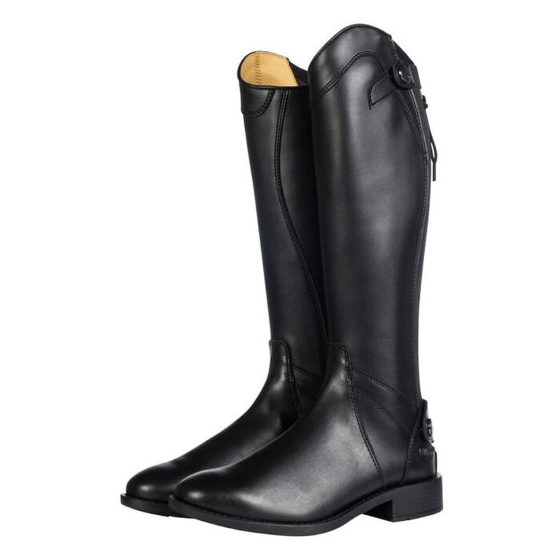 Oficerki jeździcie firmy Busse wykonane z brazylijskiej skóry bydlęcej. Sznurowane na całej długości, dzięki czemu można optymalnie dopasować je do obwodu łydki. Pod sznurowaniem stabilnie zamocowany skórzany język. Z tyłu długi, kryty podszyty zamek błyskawiczny YKK® który ułatwia zakładanie i zdejmowanie.Cholewka od strony konia wykonana z wytrzymałej...