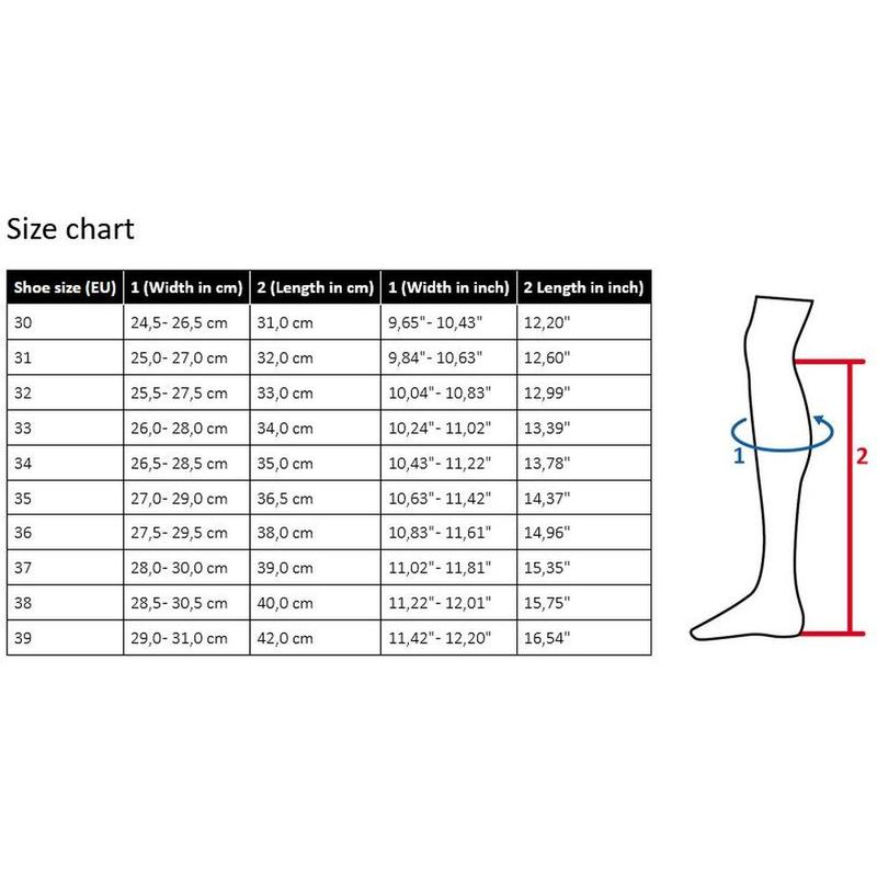 Buty wykonane w Polsce, z polskich materiałów. Antypoślizgowa podeszwa wykonana z gumy o zwiększonej przyczepności. Gumowa sznurówka z przodu dokładnie dopasowuje buta nawet do stopy z wysokim podbiciem. Elastyczna guma z tyłu umożliwia doskonałe dopasowanie się do łydki.