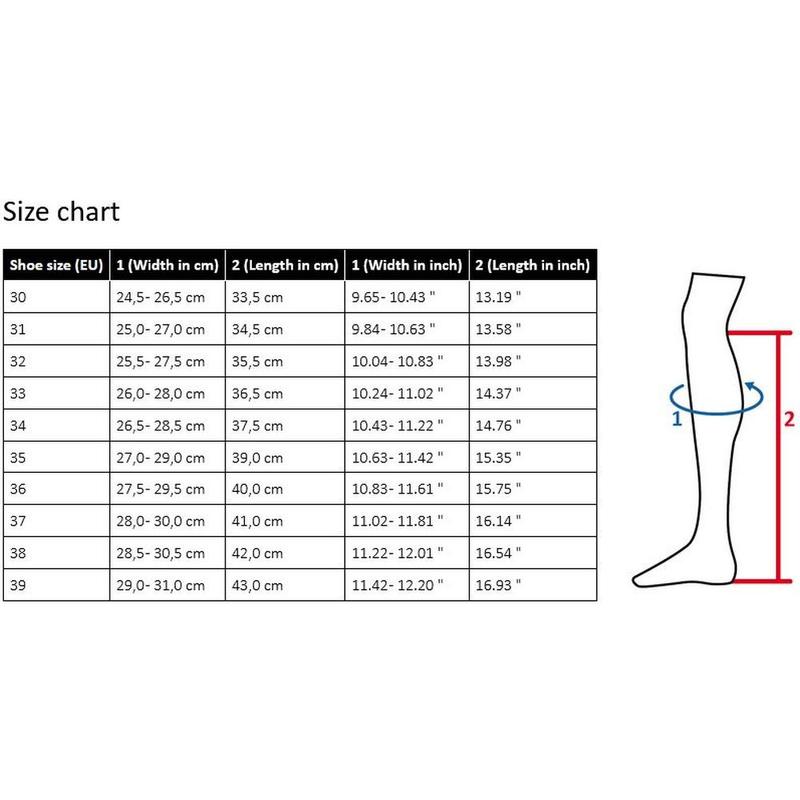 Buty wykonane w Polsce, z polskich materiałów. Antypoślizgowa podeszwa wykonana z gumy o zwiększonej przyczepności. Gumowa sznurówka z przodu dokładnie dopasowuje buta nawet do stopy z wysokim podbiciem. Elastyczna guma z tyłu umożliwia doskonałe dopasowanie się do łydki.