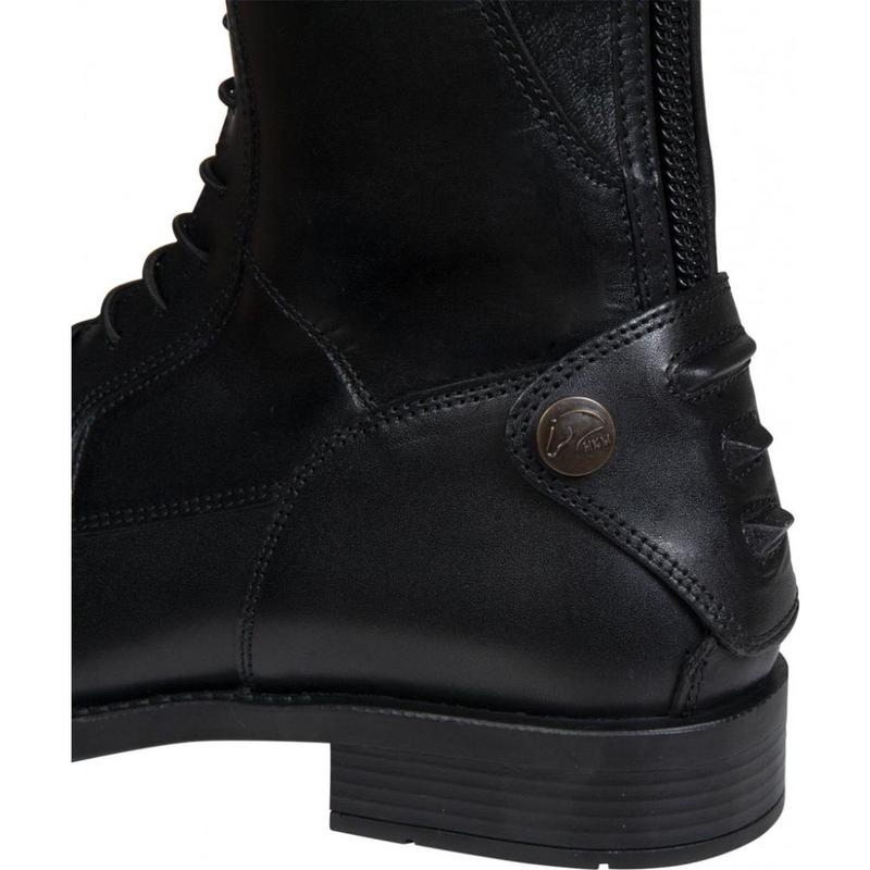 Oficerki jeździcie firmy Busse wykonane z brazylijskiej skóry bydlęcej. Sznurowane na całej długości, dzięki czemu można optymalnie dopasować je do obwodu łydki. Pod sznurowaniem stabilnie zamocowany skórzany język. Z tyłu długi, kryty podszyty zamek błyskawiczny YKK® który ułatwia zakładanie i zdejmowanie.Cholewka od strony konia wykonana z wytrzymałej...