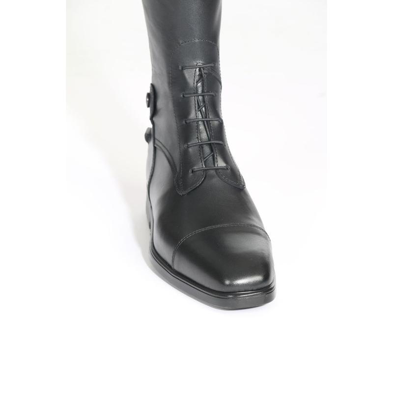 Oficerki jeździcie firmy Busse wykonane z brazylijskiej skóry bydlęcej. Sznurowane na całej długości, dzięki czemu można optymalnie dopasować je do obwodu łydki. Pod sznurowaniem stabilnie zamocowany skórzany język. Z tyłu długi, kryty podszyty zamek błyskawiczny YKK® który ułatwia zakładanie i zdejmowanie.Cholewka od strony konia wykonana z wytrzymałej...