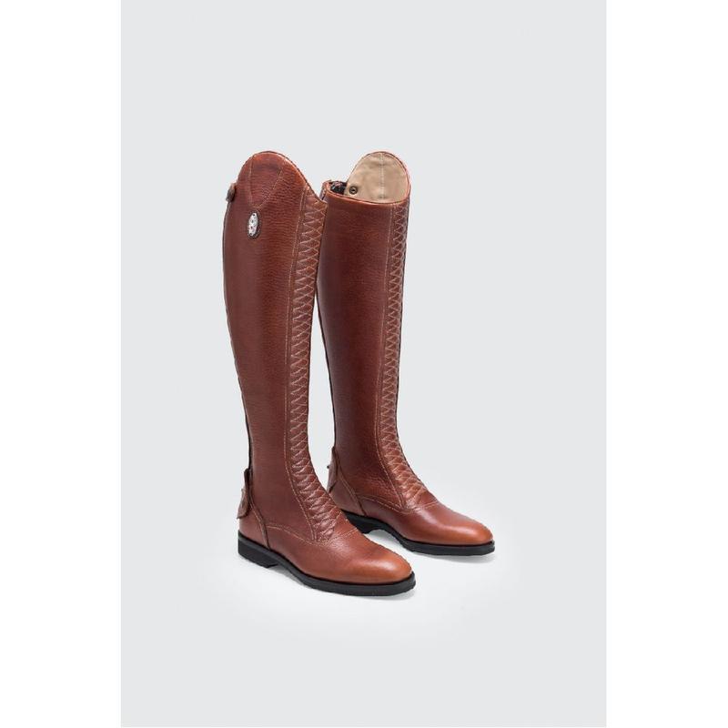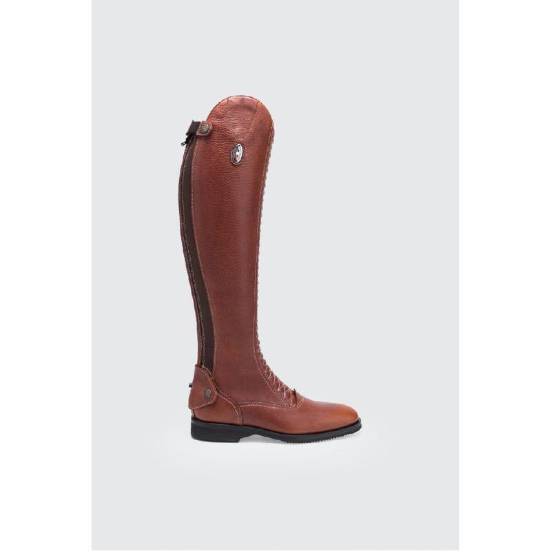 Oficerki jeździcie firmy Busse wykonane z brazylijskiej skóry bydlęcej. Sznurowane na całej długości, dzięki czemu można optymalnie dopasować je do obwodu łydki. Pod sznurowaniem stabilnie zamocowany skórzany język. Z tyłu długi, kryty podszyty zamek błyskawiczny YKK® który ułatwia zakładanie i zdejmowanie.Cholewka od strony konia wykonana z wytrzymałej...