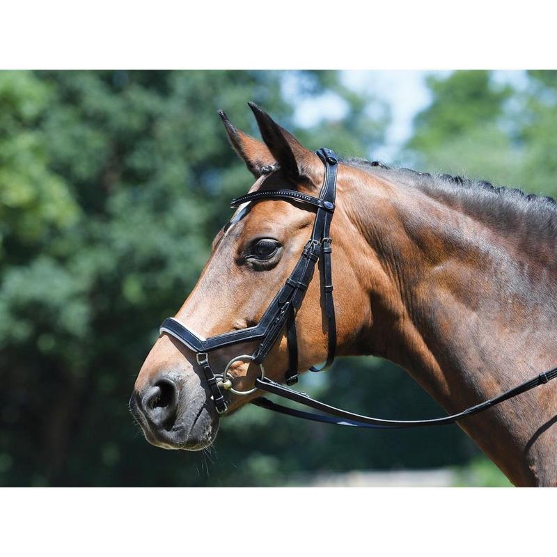 Ogłowie Feeling firmy Busse. Anatomiczne, wysokiej jakości, doskonale dopasowane, o klasycznym wyglądzie. Nachrapnik: duża możliwość dopasowania do indywidualnego kształtu głowy konia, miękko podszyty nachrapnik umiejscowiony jest w centralnej części kośc
