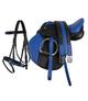 Syntetyczne siodło na kucyka firmy QHP. Dodatkowo w zestawie aluminiowe strzemiona oraz nylonowy popręg. Długość siodełka 29cm, długość siedziska 21cm. Posiada uchwyt z przodu.