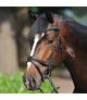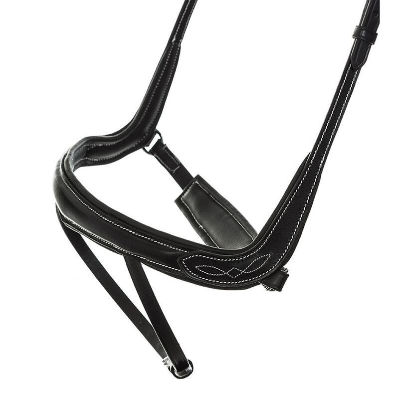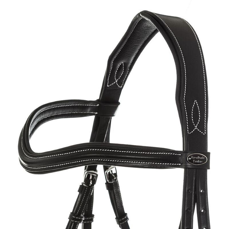 Ogłowie Ivy firmy Kavalkade z nachrapnikiem typu szwedzkiego z paskiem krzyżowym. Wykonane z wysokiej jakości, delikatnej skóry z miękkim podszyciem. Ozdobione przeszyciami z kontrastowej białej nitki.