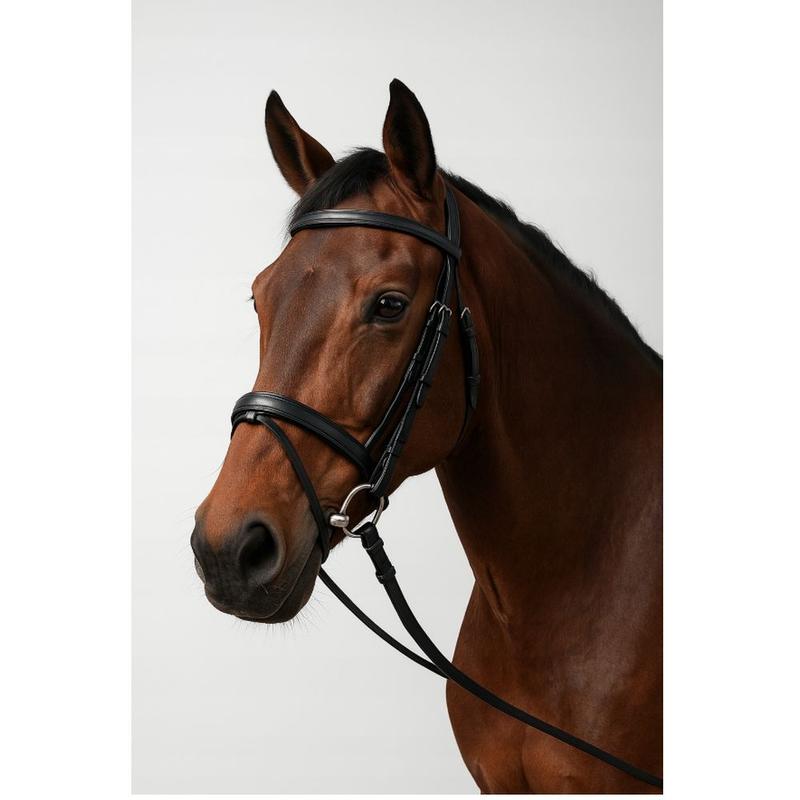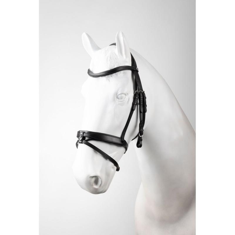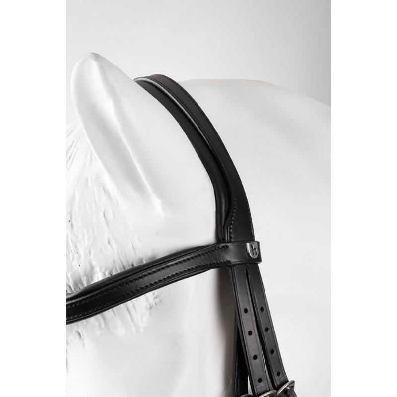 Anatomicznie profilowany nagłówek z miękkim podszyciem oraz prosty nachrapnik z ozdobnym przeszyciem nadają mu elegancki, nowoczesny wygląd.