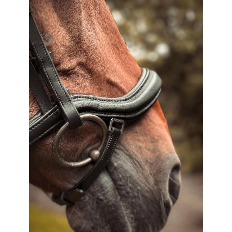 Ogłowie START Selene posiada miękkie wyściełanie na potylicy, naczółku i nachrapniku, co zapewnia dodatkowy komfort dla konia, minimalizując punkty nacisku i potencjalne otarcia. Wygodne zapięcia i regulacje umożliwiają łatwe dopasowanie ogłowia, co jest istotne dla zapewnienia odpowiedniej pozycji i funkcjonalności podczas użytkowania.