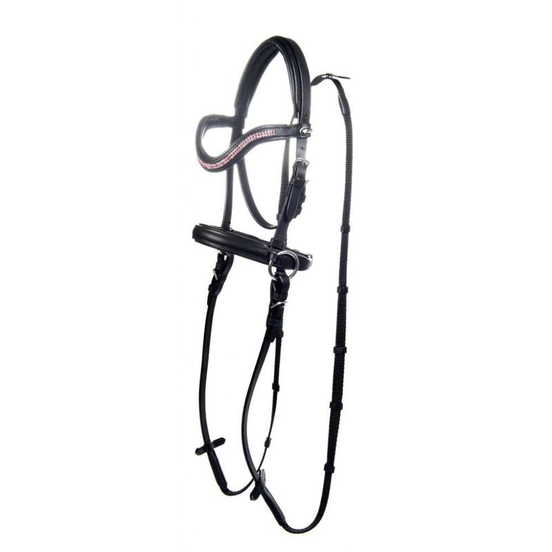 Ogłowie bezwędzidłowe dla kucyka firmy HKM. Wykonane z wysokiej jakości skóry, posiada stabilne, srebrne sprzączki.