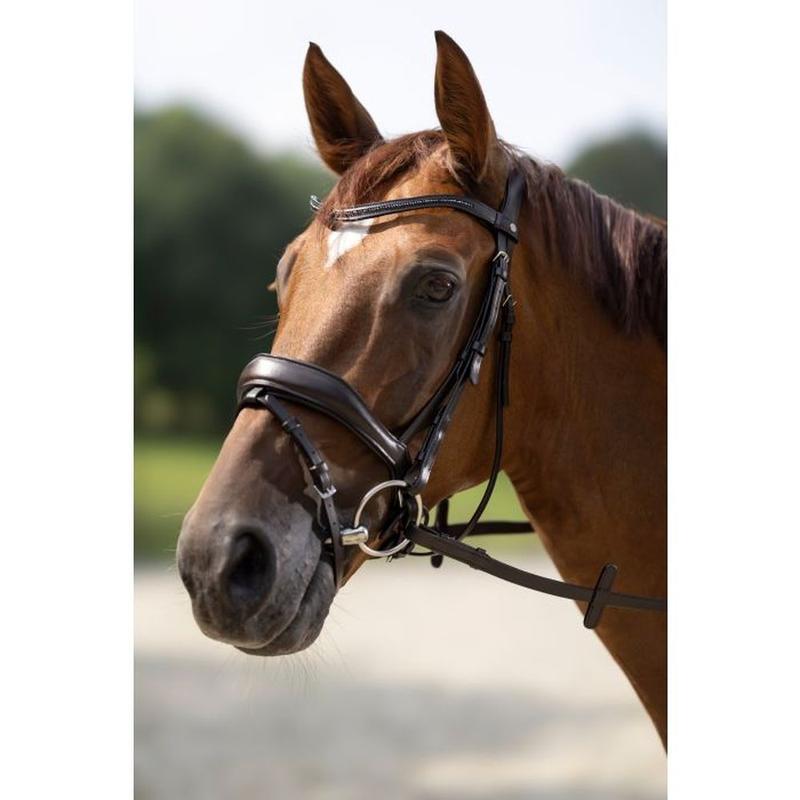 Ogłowie Waldhausen z serii S-Line wykonane jest z najlepszej europejskiej skóry, którą obrabiają najbardziej doświadczeni rzemieślnicy. Ogłowie posiada zakrzywiony nagłówek z ciemnymi kryształkami, miękko wyściełany nachrapnik i nagłówek oraz okucia ze stali nierdzewnej.Brak wodzy w zestawie.