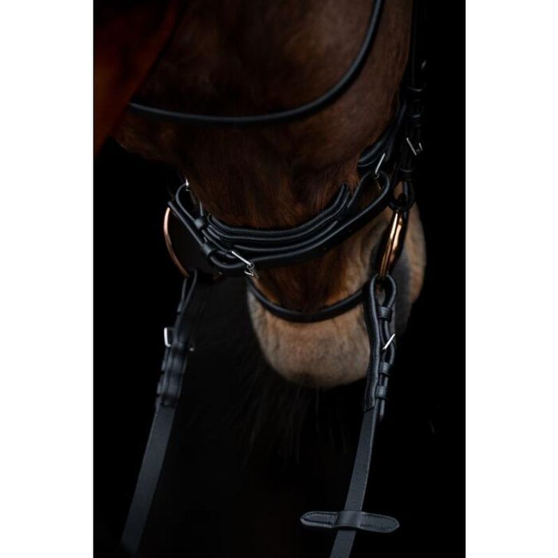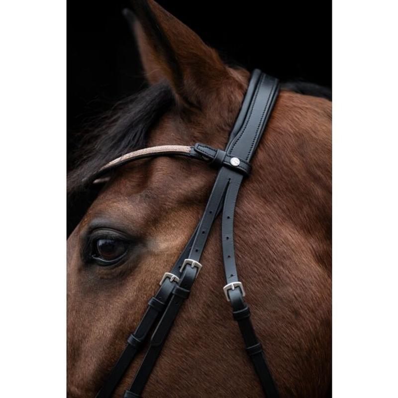 Neoprenowa podkładka pod paski ogłowia firmy Kavalkade. Chroni przed otarciami delikatnych miejsc głowy konia oraz zmniejsza nadmierny ucisk.