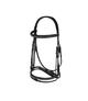 Ogłowie z nachrapnikiem angielskim Constance firmy Horze. Delikatne i zarazem eleganckie. Wykonane z wysokiej jakości, miękkiej skóry przeszywanej jasną nitką. Posiada miękko podszyty nachrapnik, naczółek oraz pasek potyliczny, by zwiększyć komfort użytkowania. Dodatkowo wyprofilowany pasek potyliczny, tak aby zapewnić więcej miejsca na uszy konia.
