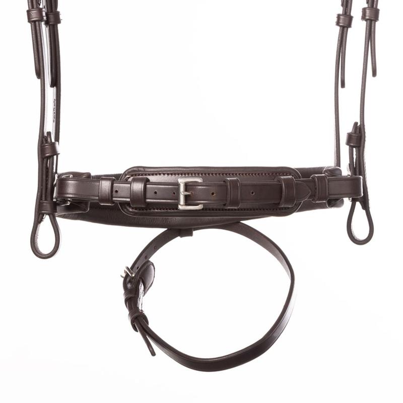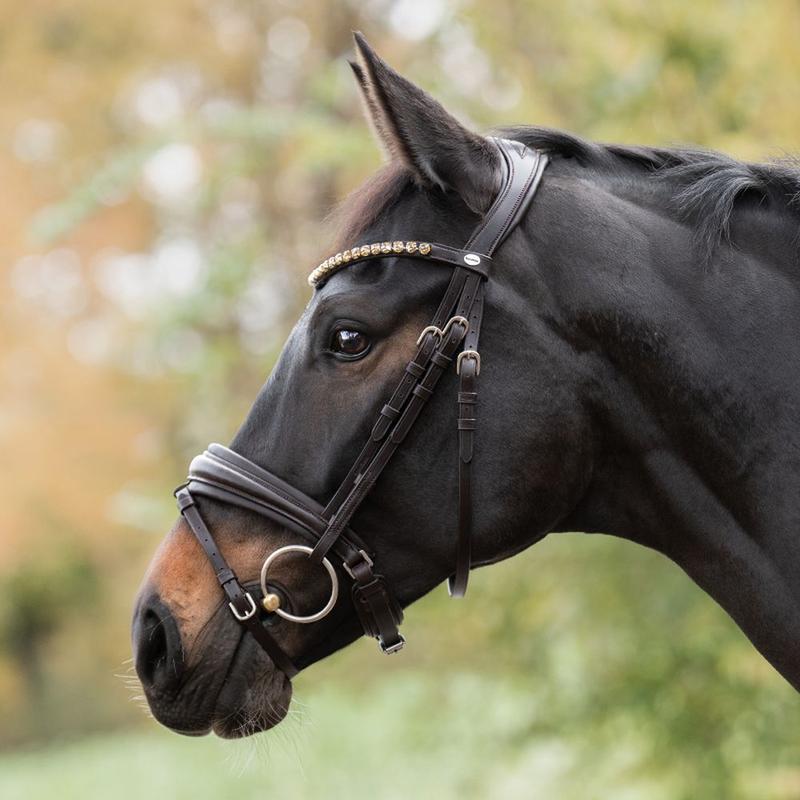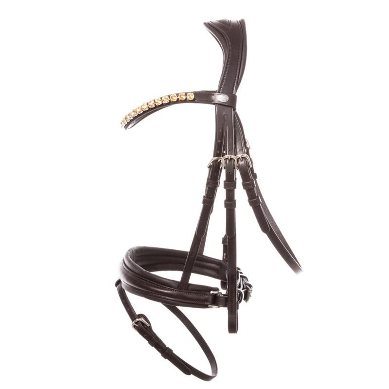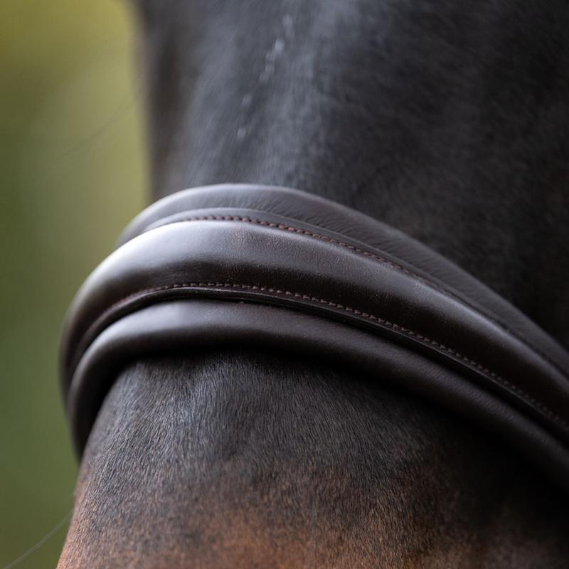 Wykonane z wysokiej jakości, miękkiej niemieckiej skóry. Anatomicznie ukształtowany i miękko podszyty pasek potyliczny idealnie dopasowuje się do głowy konia. Miękko podszyty nachrapnik oraz naczółek zapewnia komfort. Nachrapnik regulowany z dwóch stron.