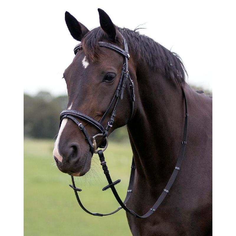 Ogłowie ma angielski nachrapnik i jest wykonane z wysokiej jakości olejowanej skóry, dzięki czemu jest bardzo elastyczne. Nachrapnik jest wygięty z boku, dzięki czemu zapewnia koniowi szczególny komfort.Ogłowie dostarczone bez wodzy.