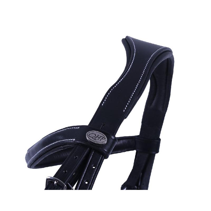 Ogłowie firmy QHP to ogłowie anatomiczne, które pozwala na swobodę wrażliwych części głowy. Naczółek jest miękko wyściełany i ma anatomiczny kształt. Nachrapnik jest swobodnie ułożony wokół głównego nerwu głowy konia, zapobiegając uciskowi. Zapinane za pomocą klamry.Materiał: skóraMateriał okuć: mosiądz