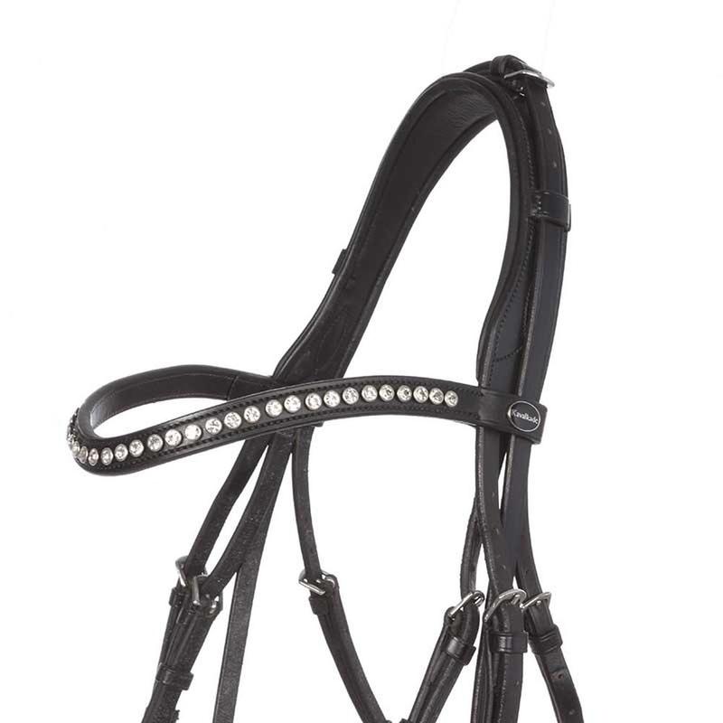 Ogłowie Waldhausen z serii S-Line wykonane jest z najlepszej europejskiej skóry, którą obrabiają najbardziej doświadczeni rzemieślnicy. Ogłowie posiada zakrzywiony nagłówek z ciemnymi kryształkami, miękko wyściełany nachrapnik i nagłówek oraz okucia ze stali nierdzewnej.Brak wodzy w zestawie.