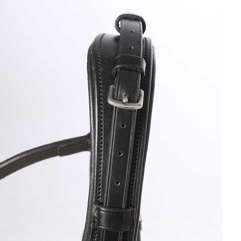 Ogłowie ma angielski nachrapnik i jest wykonane z wysokiej jakości olejowanej skóry, dzięki czemu jest bardzo elastyczne. Nachrapnik jest wygięty z boku, dzięki czemu zapewnia koniowi szczególny komfort.Ogłowie dostarczone bez wodzy.