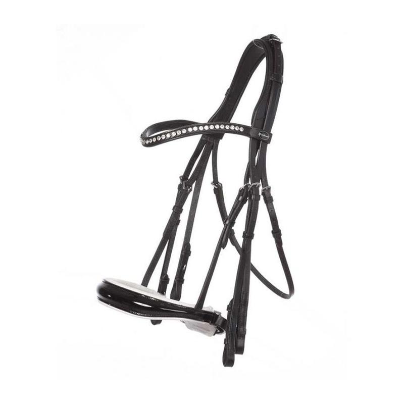 Ogłowie munsztukowe Antonia firmy Kavalkade. Miękko podszyte. Naczółek ozdobiony kryształkami. W zestawie znajdują się wodze.