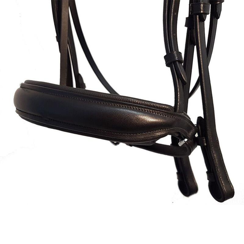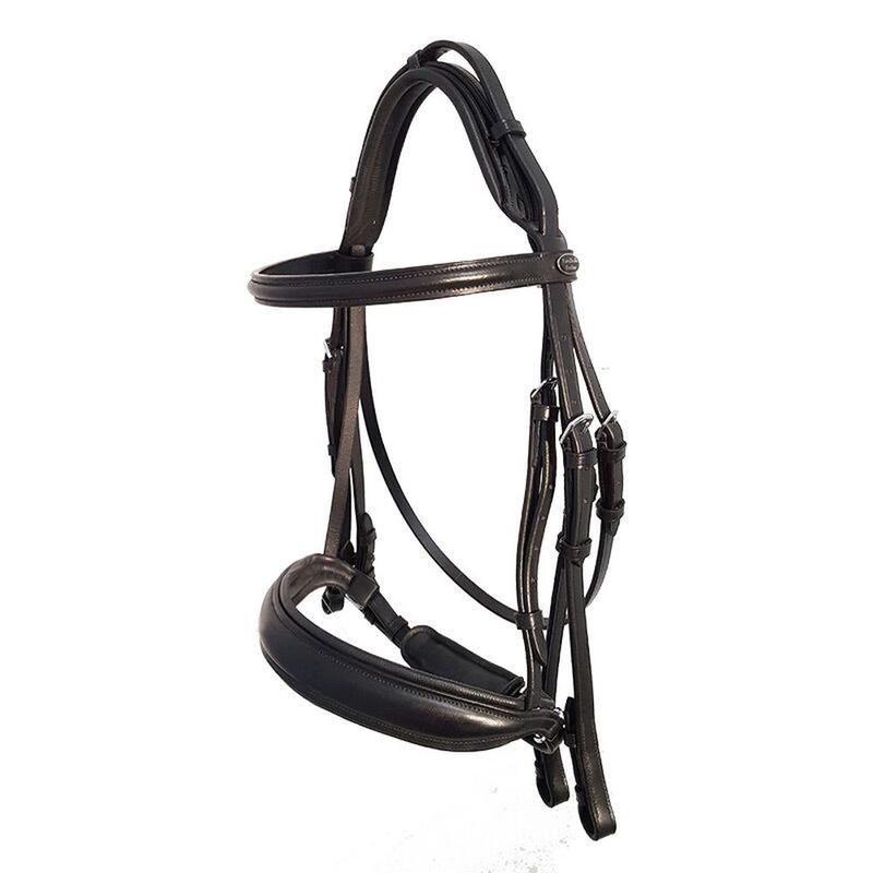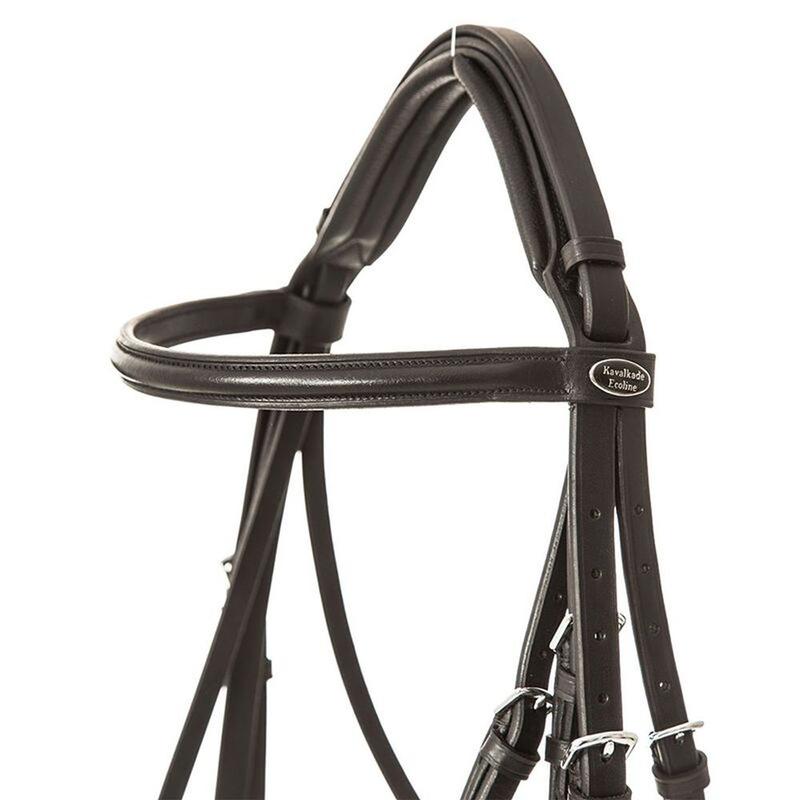 Ogłowie munsztukowe Dacira firmy Kavalkade. Wykonane z wysokiej jakości skóry Ecoline, która cechuje się bardzo dobrym wykonaniem i niezwykłą trwałością. Posiada miękko podszyty pasek potyliczny oraz nachrapnik. Naczółóek klasyczny, wykonany z gładkiej skóry. Ogłowie w komplecie z wodzami munsztukowymi i wędzidłowymi.
