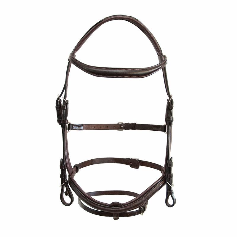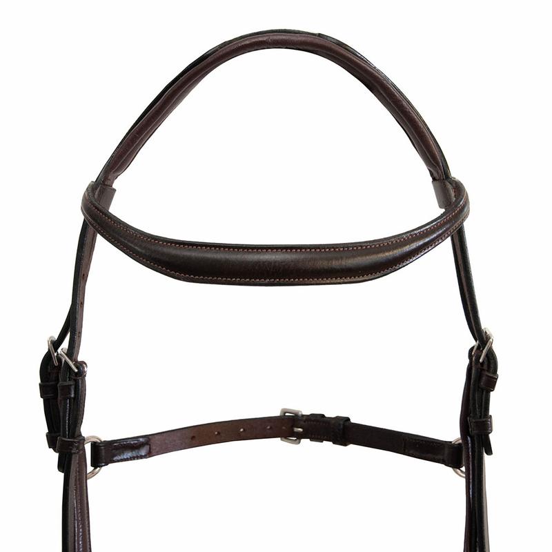 Ogłowie Aurora firmy Parku. Wykonane z wysokiej jakości skóry z nachrapiniem angielskim z wodzami. Narchapnik, pasek potyliczny oraz naczółek podszyty miekką skórą.
