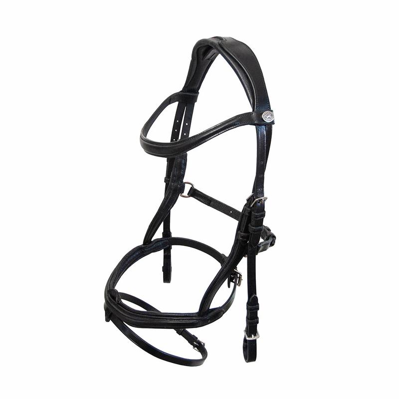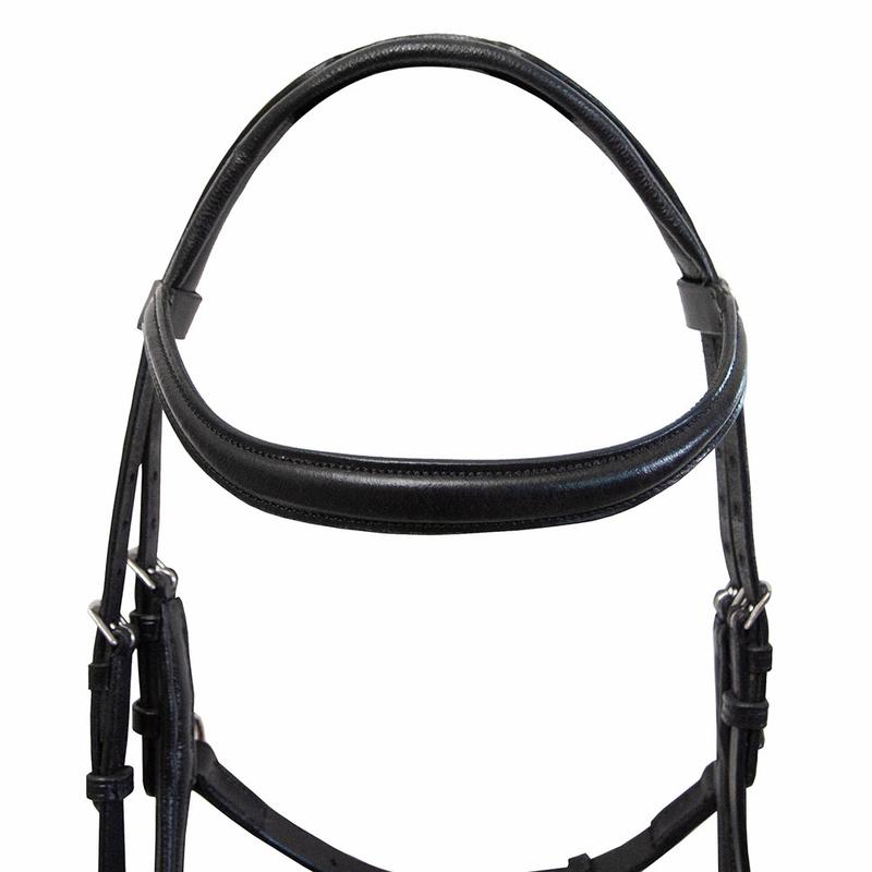 Ogłowie o eleganckim wyglądzie. Wykonana z miękkiej skóry.Posiada miękkie podszycie przy nachrapniku, naczółku i pasku potylicznym, który dodatkowo jest anatomicznie profilowany.W komplecie wodze parciano-skórzaneOkucia w srebrnym kolorze