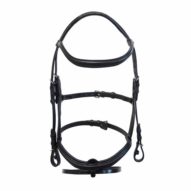 Ogłowie firmy Horze. Skórzane ogłowie, anatomicznie ukształtowany nagłówek. Miękkie skórzane podszycie na nachrapniku i potylicy. Podniesiony prosty naczółek. Szeroki nachrapnik crank z przymocowanym paskiem. Nachrapnik odpinany z obu stron. Wodze nie wchodzą w skład zestawu.Opis techniczny:100% skóra.