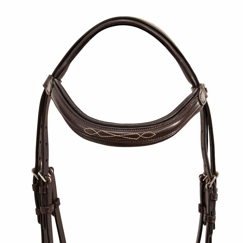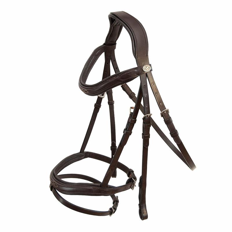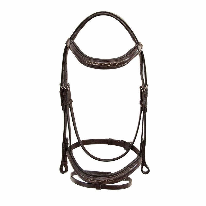 Ogłowie Hannah firmy Parku. Wykonane z wysokiej jakości skóry z nachrapiniem angielskim z wodzami. Posiada anatomiczny pasek potyliczny. Narchapnik, pasek potyliczny oraz naczółek podszyty miekką skórą.