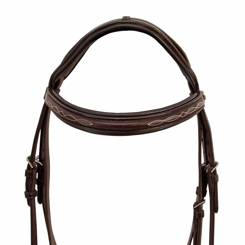 Ogłowie Sarah firmy Parku. Wykonane z wysokiej jakości skóry z nachrapiniem angielskim z wodzami. Narchapnik, pasek potyliczny oraz naczółek podszyty miekką skórą.