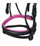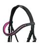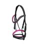 Ogłowie z firmy York z kolorowym podszyciem. Wykonane z wysokiej jakości skóry. Wyposażone w naczółek wysadzany syntetycznymi kryształkami oraz nachrapnik kombinowany. Podgardle regulowane z dwóch stron. W komplecie ze skórzano-parcianymi wodzami. Materiał: skóra naturalnal; srebrne okucia ze stali nierdzewnej. Pielęgnacja: przecierać wilgotną szmatką....