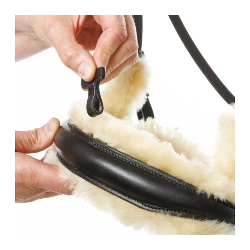 Wyściółka z jagnięcej skóry na potylicy i nachrapniku, którą można zdjąć za pomocą rzepu. Skóra jagnięca zawsze wraca do swojego pierwotnego kształtu i zmniejsza ucisk i otarcia. Jest antyalergiczna i antyseptyczna, co oznacza, że ​​nadaje się również dla koni o wrażliwej skórze. Prawdziwa skóra jagnięca reguluje temperaturę i oddycha. Odprowadza pot i ciepło znacznie skuteczniej niż syntetyki. Skóra jagnięca ma właściwości samoczyszczące, odpycha brud.