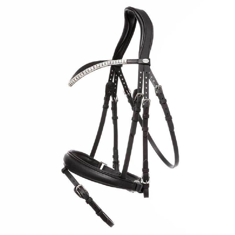 Ogłowie Waldhausen z serii S-Line wykonane jest z najlepszej europejskiej skóry, którą obrabiają najbardziej doświadczeni rzemieślnicy. Ogłowie posiada zakrzywiony nagłówek z ciemnymi kryształkami, miękko wyściełany nachrapnik i nagłówek oraz okucia ze stali nierdzewnej.Brak wodzy w zestawie.