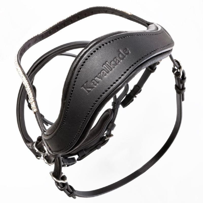 Ogłowie dla małych kucyków oraz szetlandów z lekko zakrzywionym naczółkiem z kryształkami.Dostarczane z wodzami parcianymi.Materiał: skóraMateriał osprzętu: stal nierdzewna, mosiądz