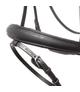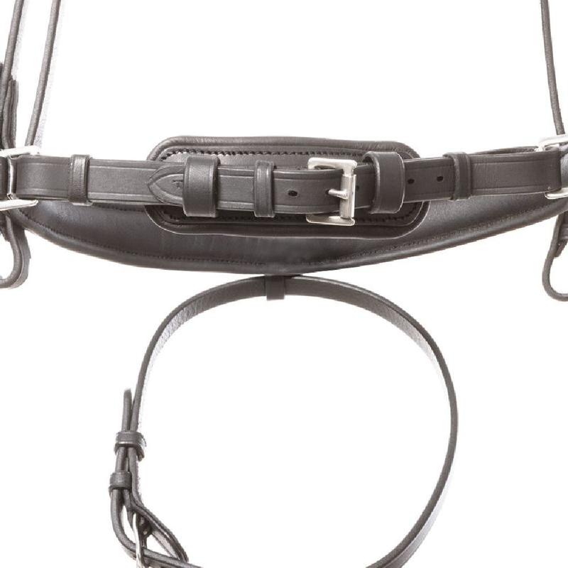 Ogłowie ma angielski nachrapnik i jest wykonane z wysokiej jakości olejowanej skóry, dzięki czemu jest bardzo elastyczne. Nachrapnik jest wygięty z boku, dzięki czemu zapewnia koniowi szczególny komfort.Ogłowie dostarczone bez wodzy.