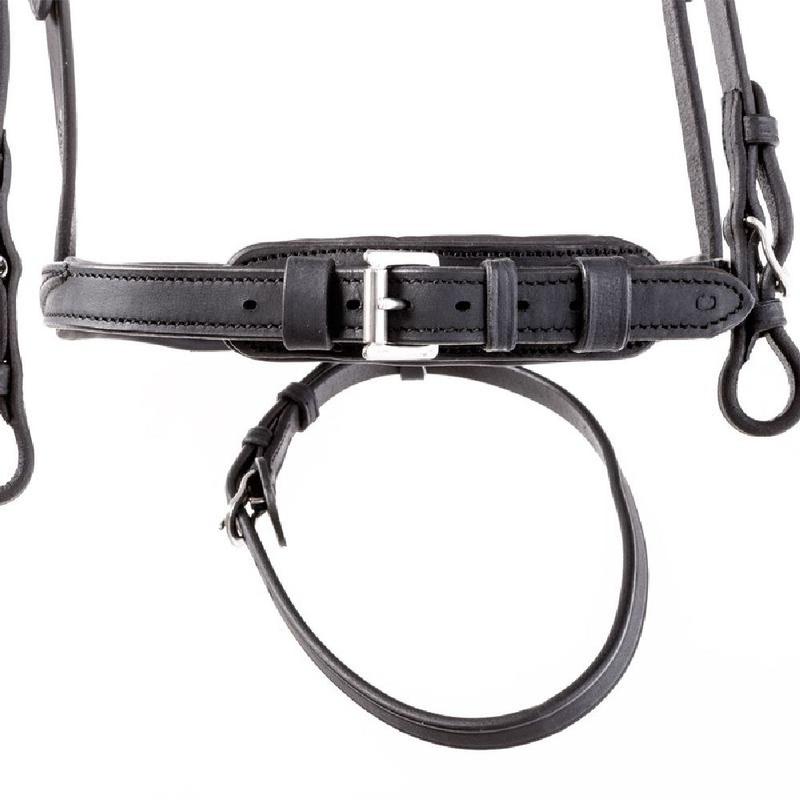Ogłowie ma angielski nachrapnik i jest wykonane z wysokiej jakości olejowanej skóry, dzięki czemu jest bardzo elastyczne. Nachrapnik jest wygięty z boku, dzięki czemu zapewnia koniowi szczególny komfort.Ogłowie dostarczone bez wodzy.