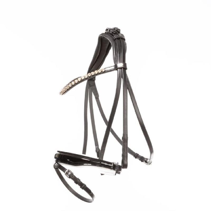 Ogłowie o eleganckim wyglądzie. Wykonana z miękkiej skóry.Posiada miękkie podszycie przy nachrapniku, naczółku i pasku potylicznym, który dodatkowo jest anatomicznie profilowany.W komplecie wodze parciano-skórzaneOkucia w srebrnym kolorze