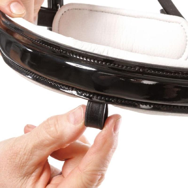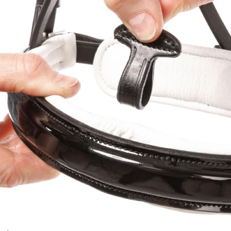 Ogłowie ma angielski nachrapnik i jest wykonane z wysokiej jakości olejowanej skóry, dzięki czemu jest bardzo elastyczne. Nachrapnik jest wygięty z boku, dzięki czemu zapewnia koniowi szczególny komfort.Ogłowie dostarczone bez wodzy.
