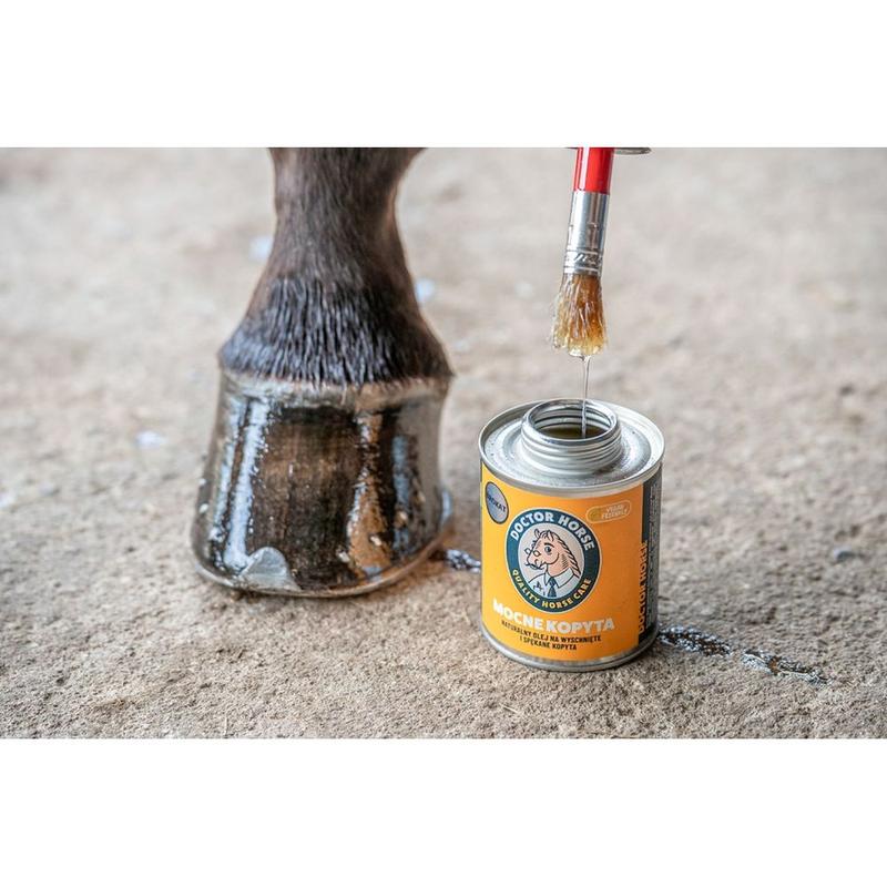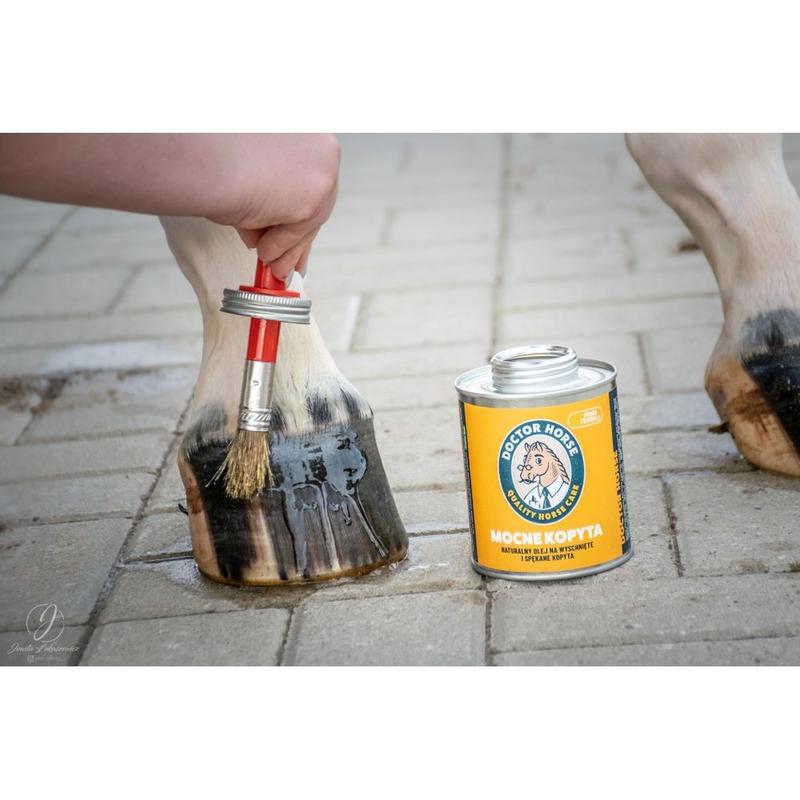 Olej do kopyt z pędzielkiem - który odżywia, wzmacnia i chroni przed wysychaniem oraz pękaniem. Dzięki starannie dobranej mieszance olejów roślinnych bogatych w witaminy i kwasy tłuszczowe, kopyta stają się mocniejsze, bardziej elastyczne i lśniące.