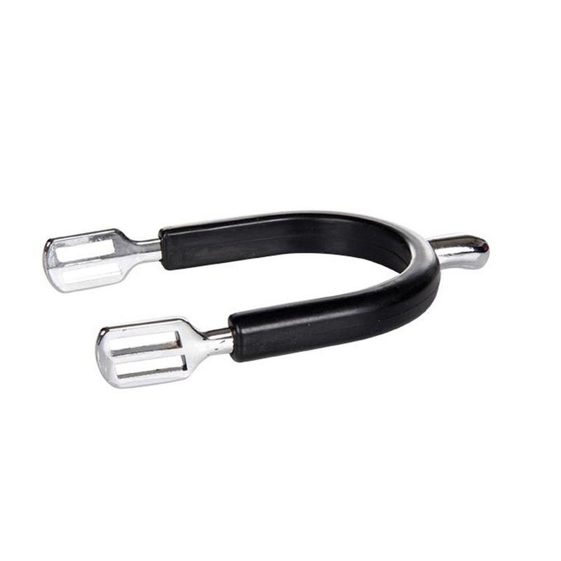 Ostrogi damskie z ochroną gumową firmy HKM. Wykonane ze stali nierdzewnej. Zakończone kuleczką. W zestawie parciane paski.