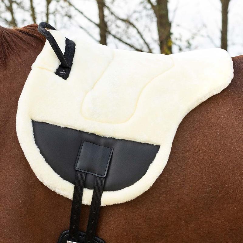 Pad firmy QHP. Obszyty futerkiem. Wyściełany pianką poliuretanową. Wyposażona w uchwyt z przodu.