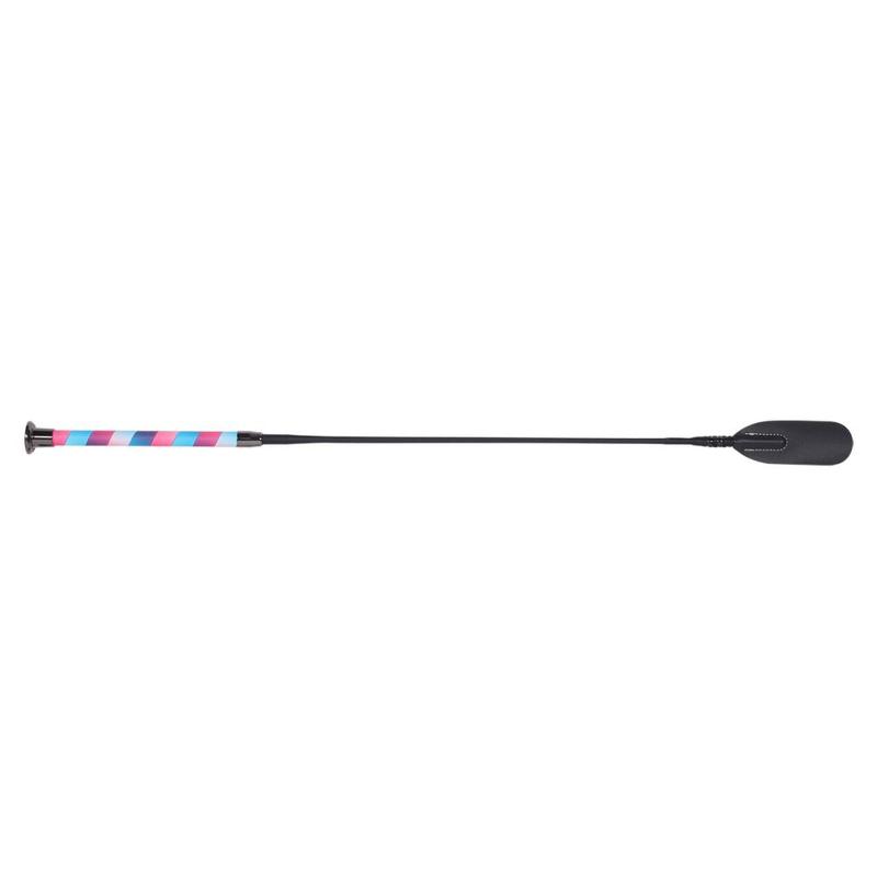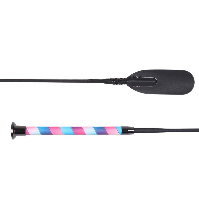 Bat skokowy Ombre o efektownym wyglądzie dzięki rączce w kolorze ombre. Różne kolory zapewniają wesoły akcent. Bat zakończony jest czarnym metalowym pokrętłem zapewniającym dobre trzymanie w dłoni.