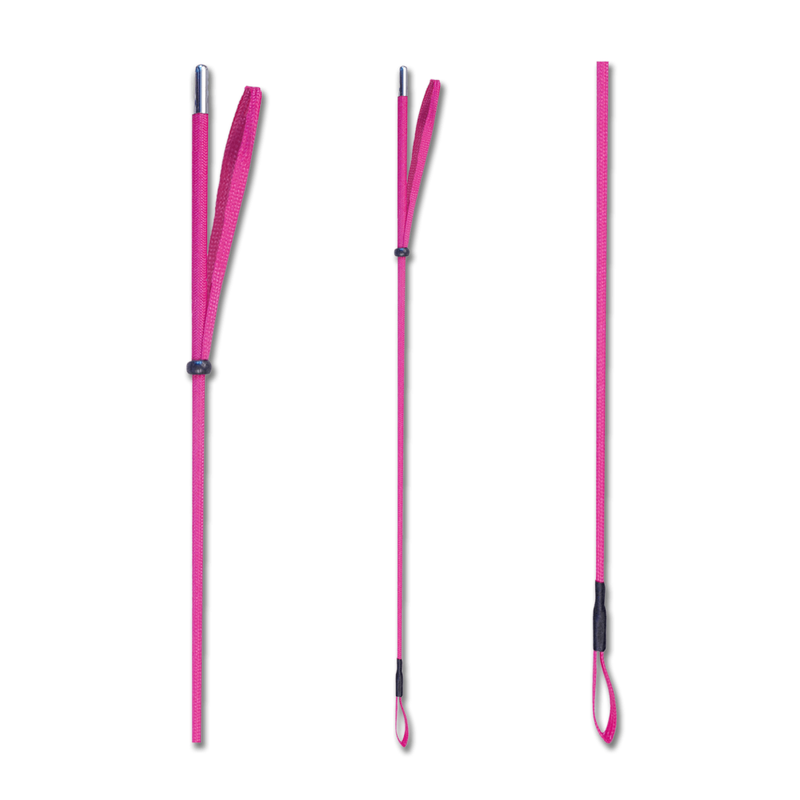 Palcat Pony firmy Przybylski. Wykonany z włókna szklanego. Owinięty dwoma sznurkami plecionymi w różnych kolorach z rączką z pianki. O długości 65cm.