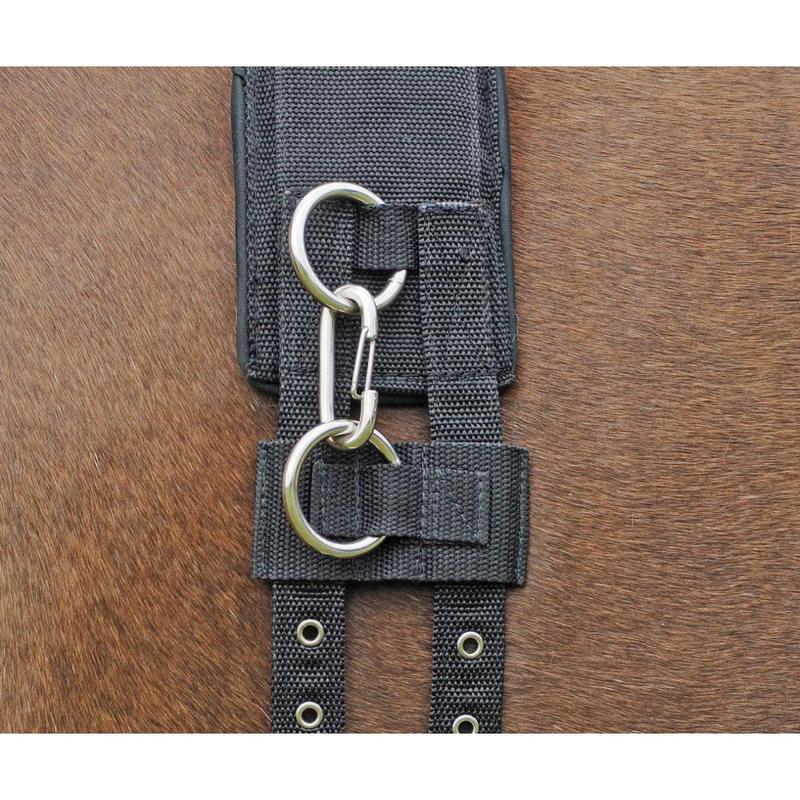 Pas do lonżowania firmy Horze. Wykonany z nylonu, podszyty miękkim materiałem w kłębie co zapobiega obtarciom. Możliwość regulacji dzięki sprzączką umieszczonym z obu stron. Różne miejsce mocowania lonży dzięki zastosowaniu wielu mocowań.