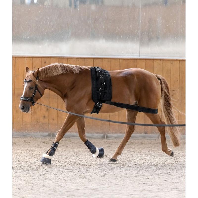 Działanie pasa ukierunkowane jest na wzmacnianie siły zadu oraz lepsze podstawiane go pod środek ciężkości, dzięki czemu idealnie sprawdzi się do lonżowana i nie tylko. Wysoce elastyczny materiał pasa zapewnia optymalne dopasowanie i łatwość użytkowania. Dzięki zapięciu na rzepy po obu stronach pas można szybko i łatwo przymocować zarówno do pasa do lonżowania, jak i popręgu, a jego długość można indywidualnie dopasować do konia.