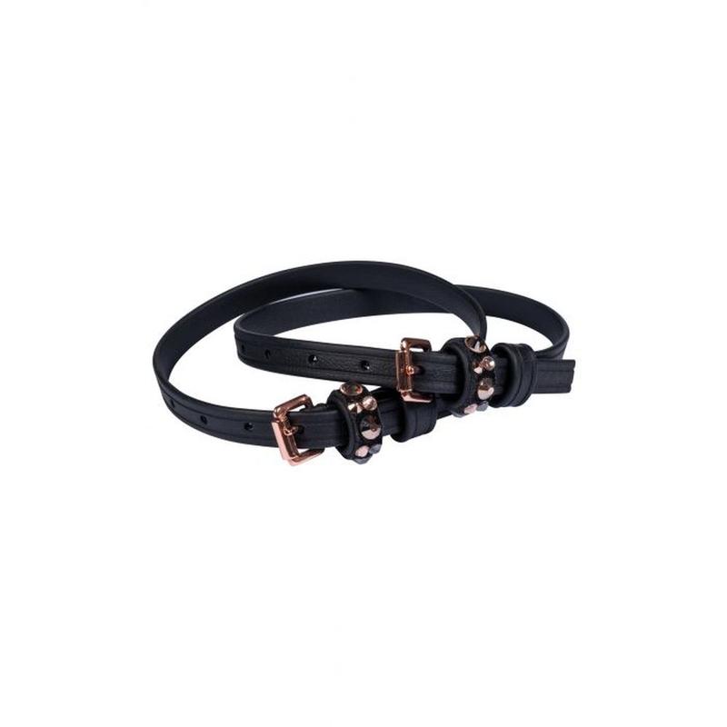 Paski do ostróg firmy HKM. Wykonane z miękkiej skóry, ozdobione drobnymi kryształkami i metalowymi klamrami.