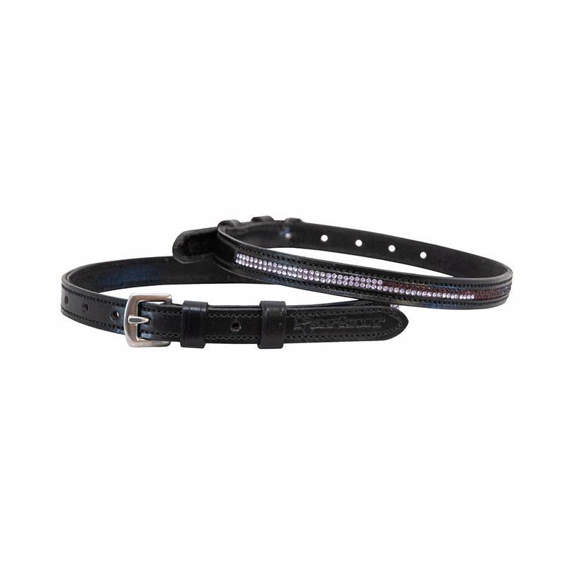 Paski do ostróg firmy Kavalkade. Wykonane z miękkiej, trwałej skóry wysokiej jakości.Sprzedawane w parach, z eleganckimi kryształkami na skórzanych szlufkach.Jeden rozmiar (40,5 cm).