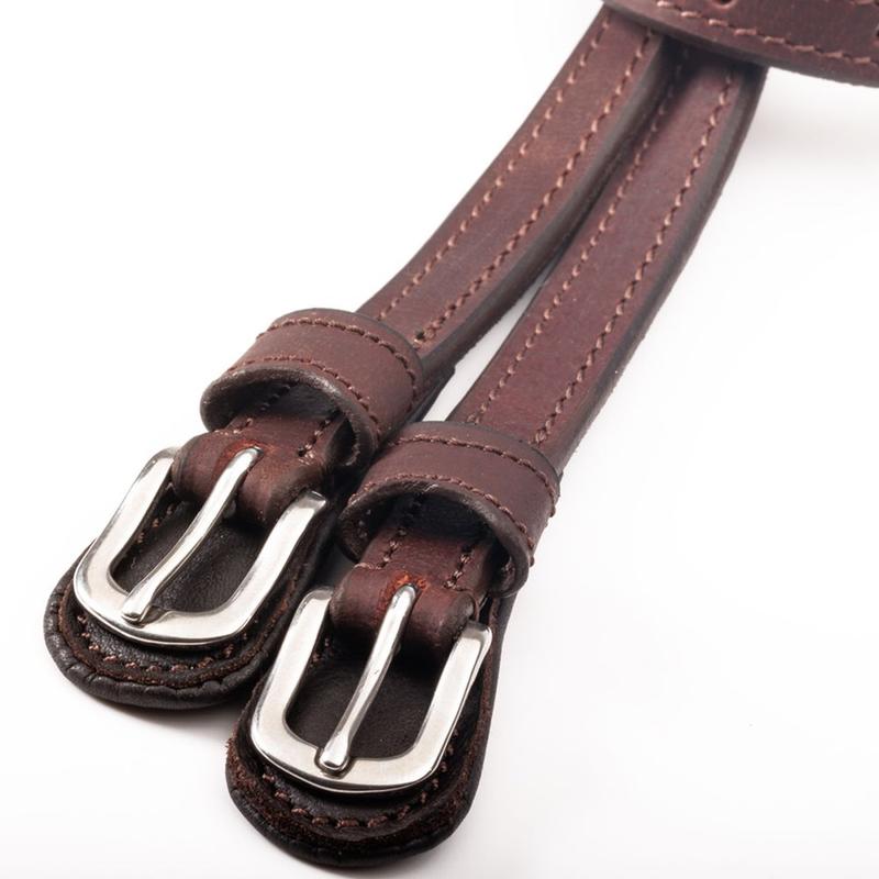 Paski do ostróg firmy Kavalkade. Wykonane ze skóry. Zakończone klamrami z bolcem, które umożliwiają idealne dopasowanie ostróg do stopy.